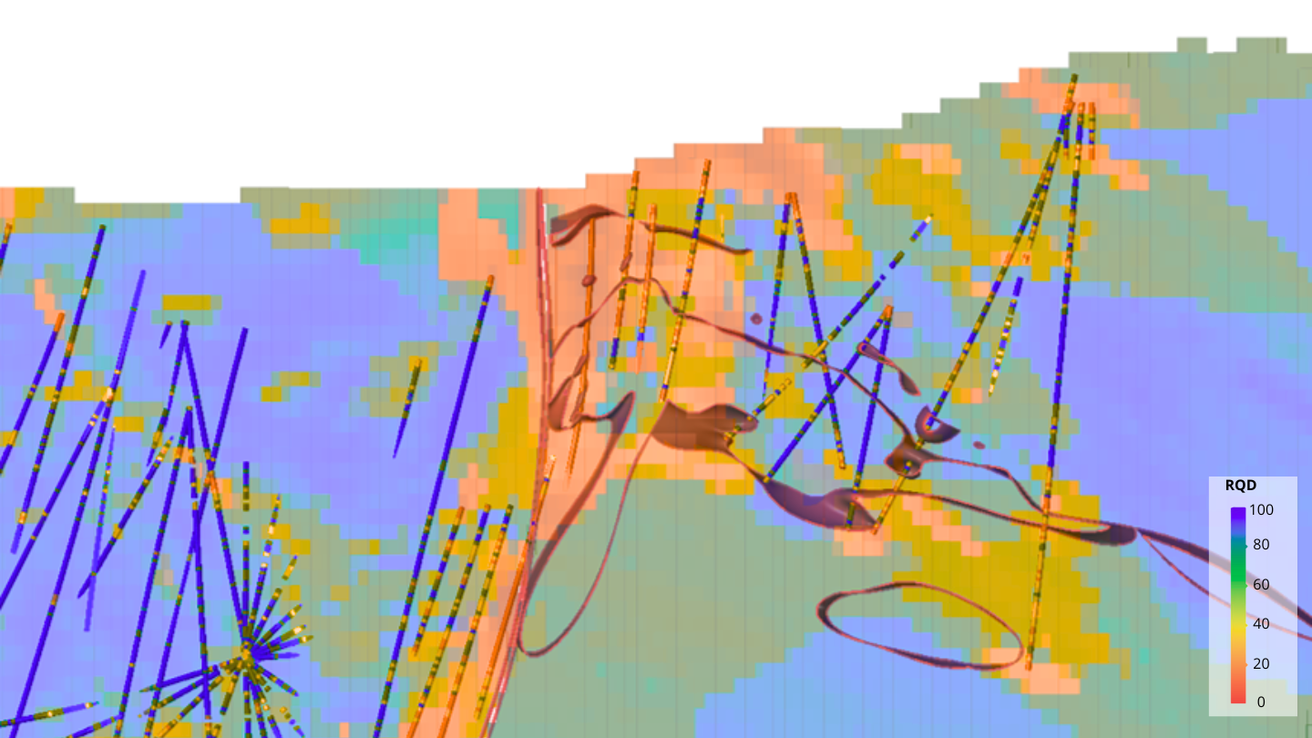 • Rock mass quality modeling – models representing the spatial variations in rock mass quality (e.g. RQD models, GSI models).